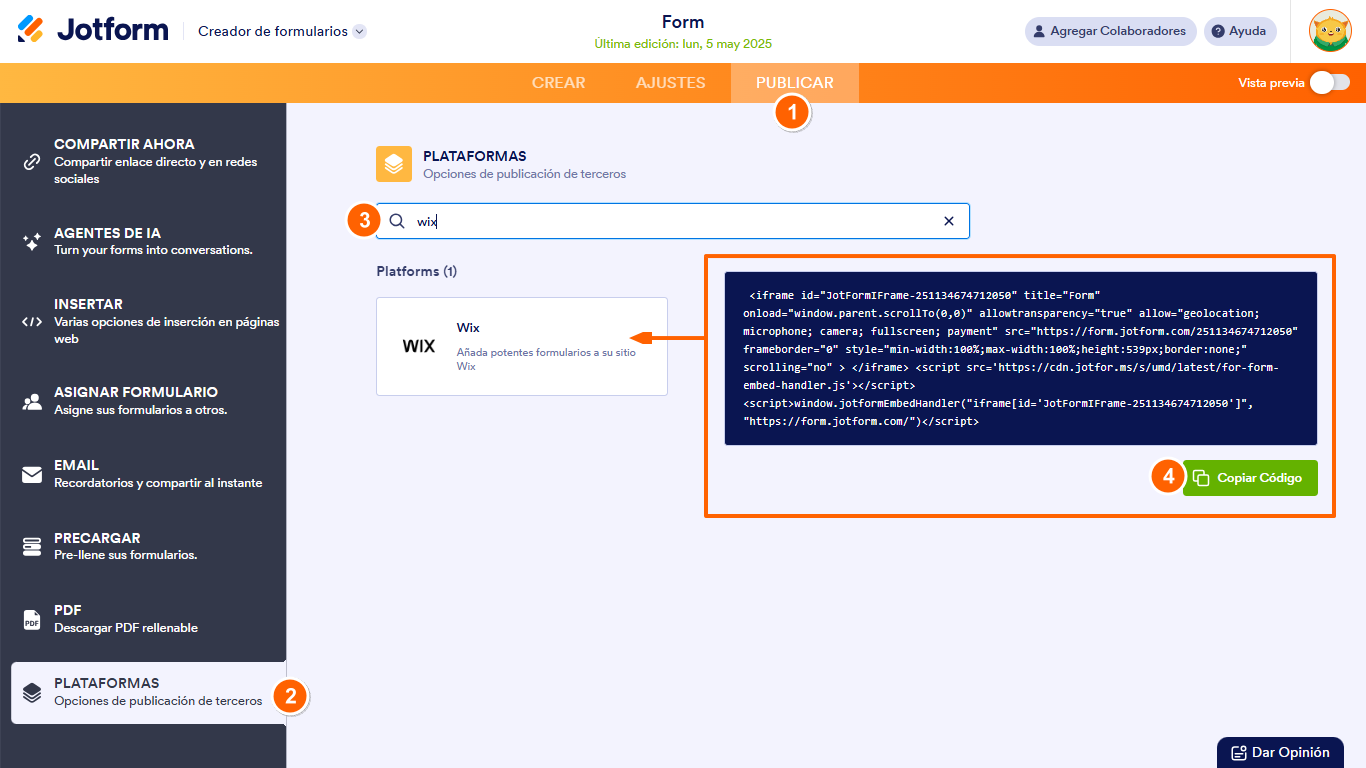Cómo insertar un formulario de Jotform en un sitio web de Wix