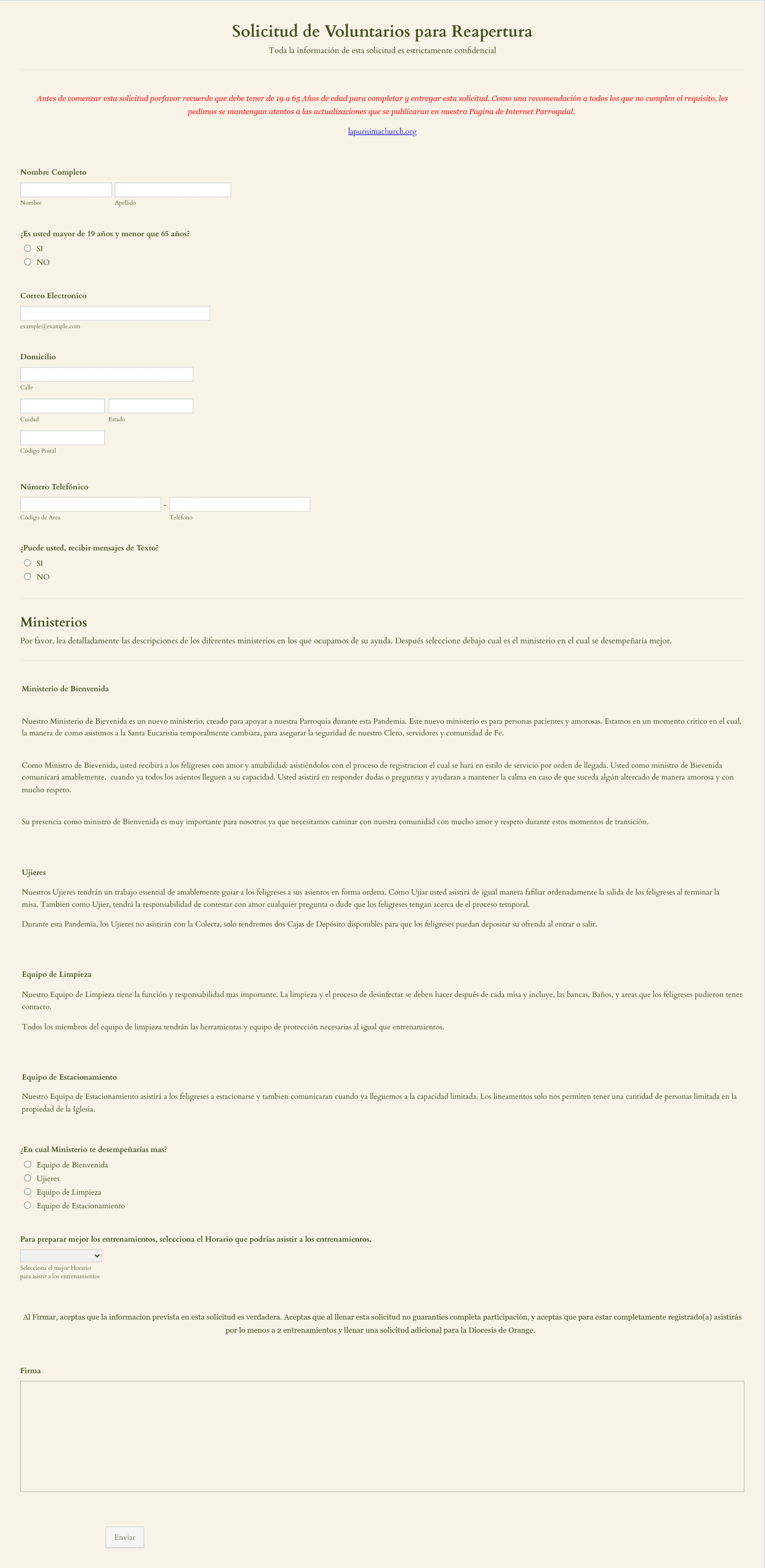 Este formulario ha sido creado para ayudar a las iglesias que deseen utilizarlo en la gestión de las personas que puedan asistir registrándose vía el presente.