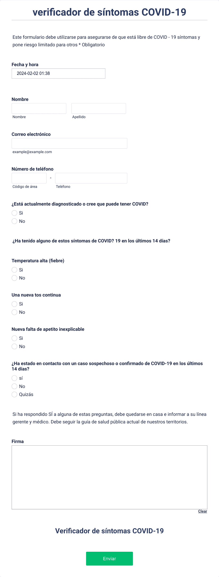 Hay muchos tipos variados de formularios médicos en el sector de salud, y pueden abarcarlo todo, desde el seguro hasta el historial médico o el alta. Los principales tipos de formularios de atención médica son los formularios de telesalud, los formularios de registro de pacientes, los formularios de farmacia, los formularios de cuidados paliativos, los formularios de alta hospitalaria y las encuestas médicas. No obstante, estos formularios también pueden abarcar temas como el consentimiento informado, las recetas, las reclamaciones de seguros y las derivaciones.