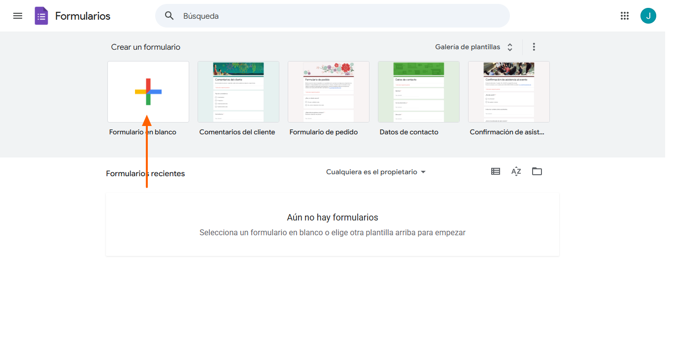 - Abre un formulario existente o crea uno nuevo desde la página de inicio.