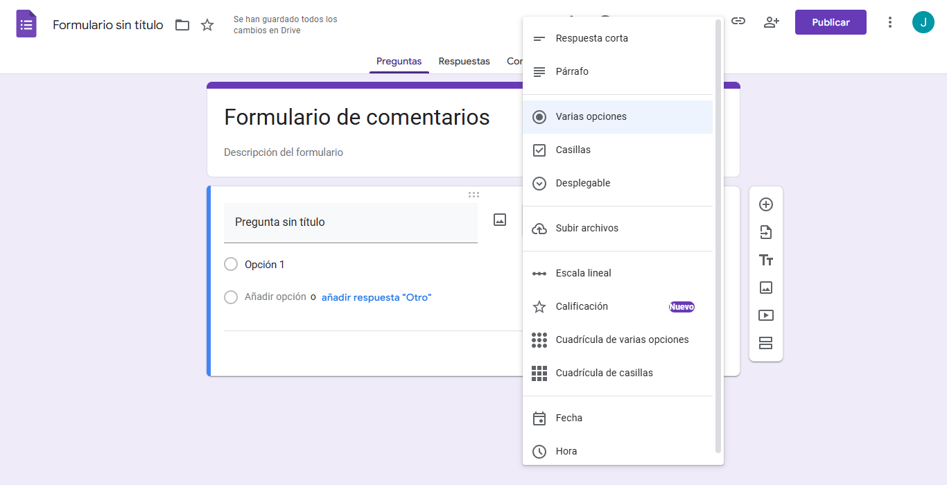 A continuación, un desglose de cómo crear un formulario de comentarios en Google Forms.