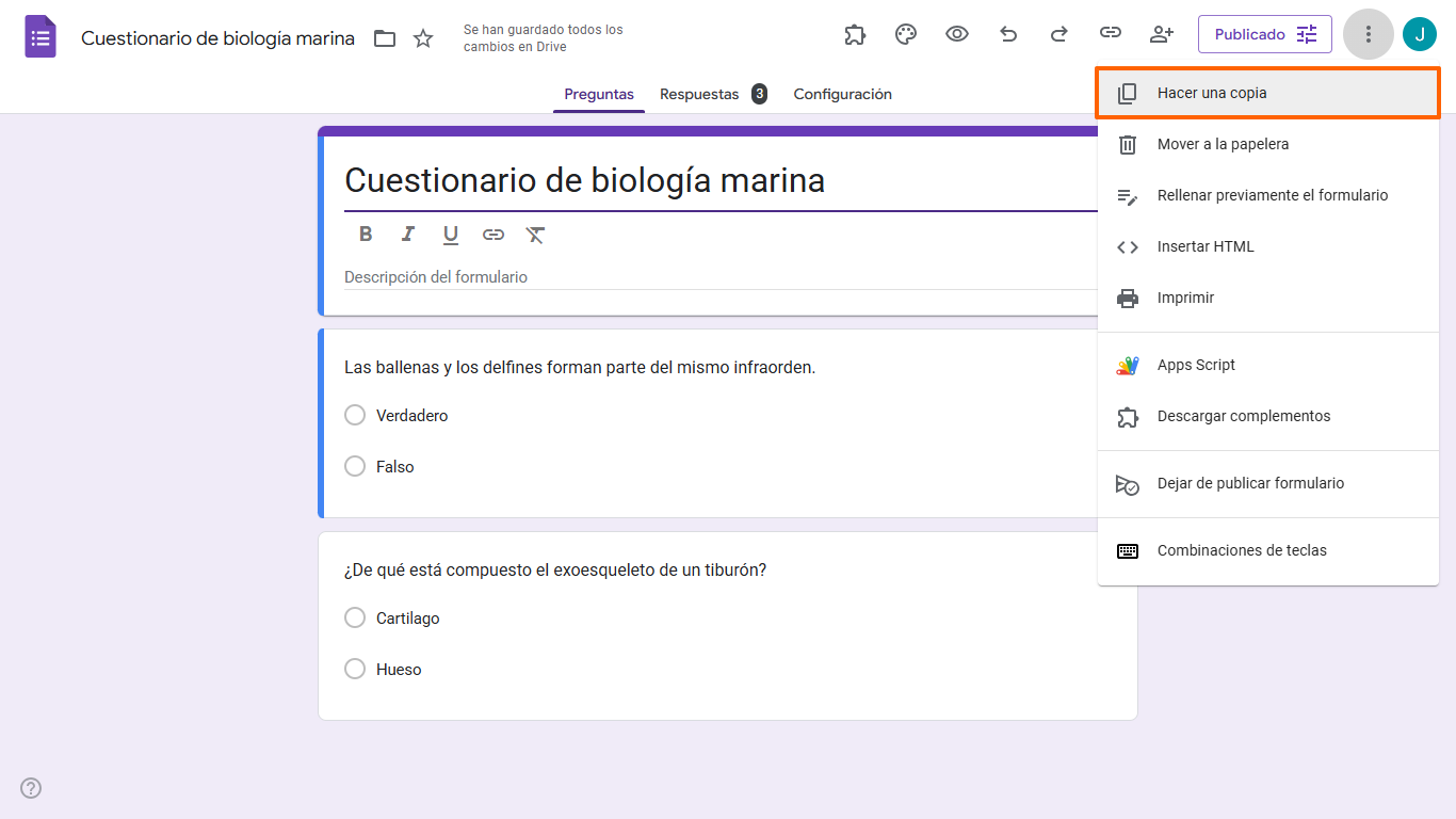 Si ya tienes abierto el formulario, puedes duplicarlo en solo tres pasos.