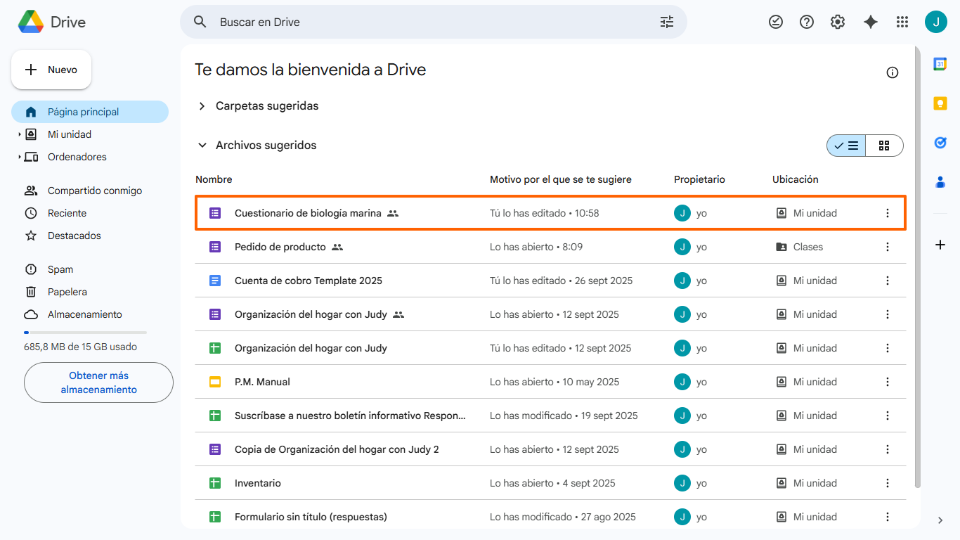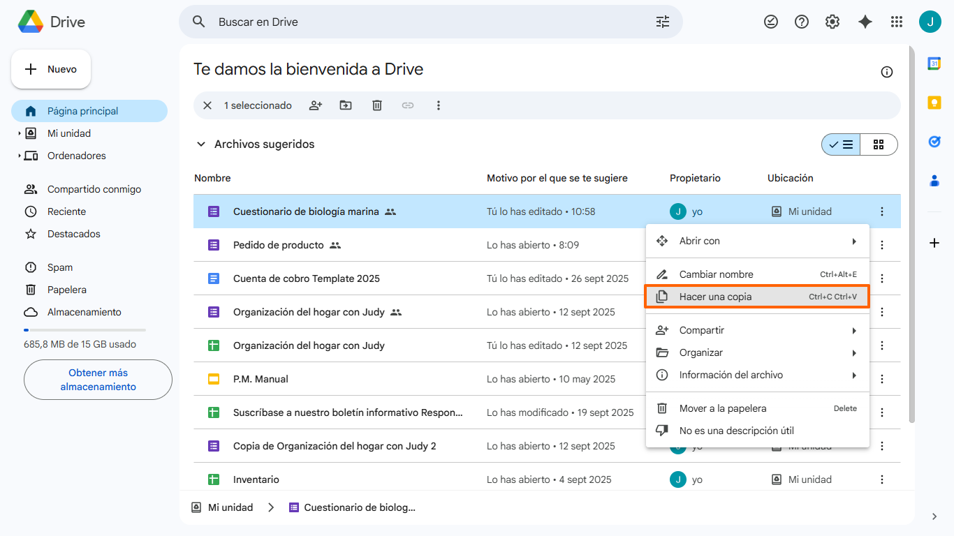 Comienza navegando hasta el formulario que deseas copiar en Google Drive.