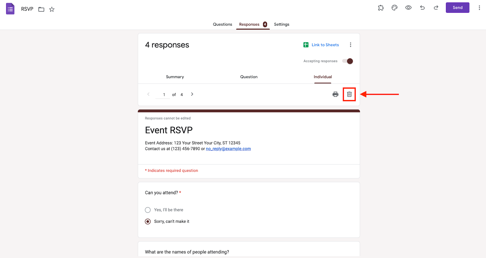 También puedes eliminar todas las respuestas de un formulario de una vez, lo cual es mucho más rápido que eliminarlas individualmente.