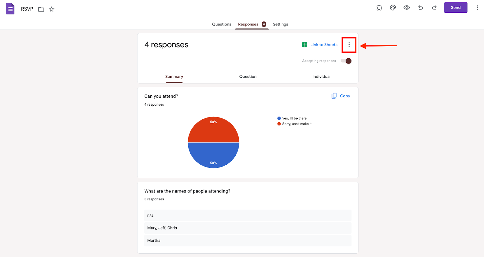 - Haz clic en la pestaña Respuestas en la parte superior del formulario.