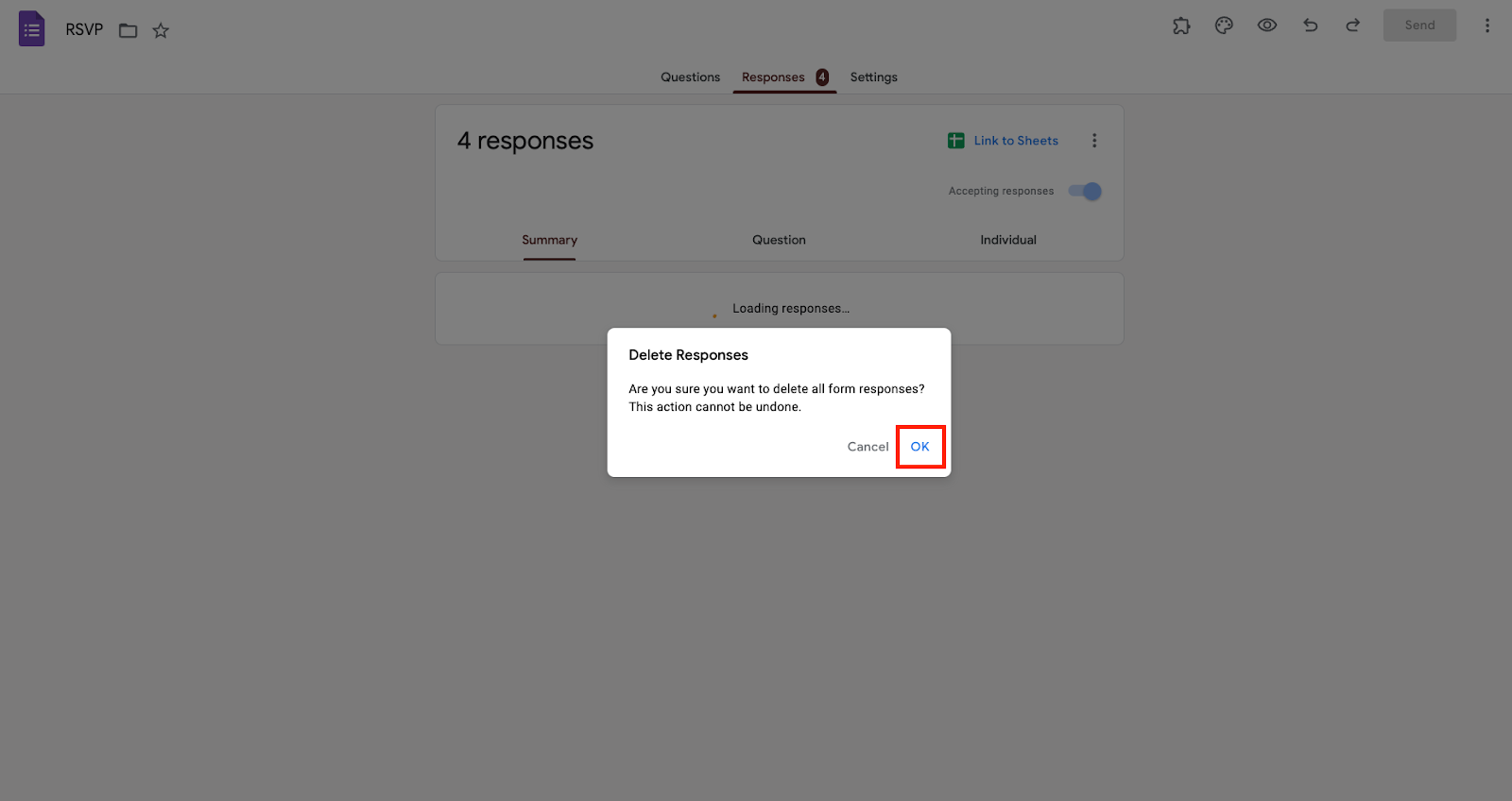 Cómo eliminar todas las respuestas de un formulario