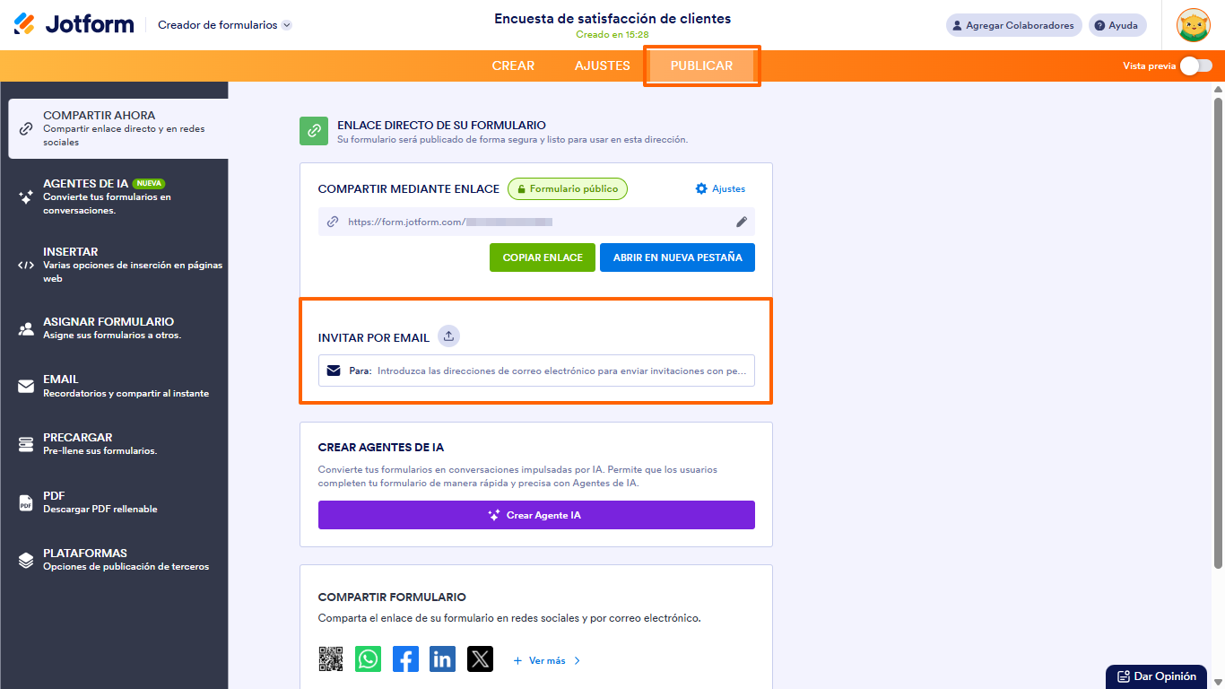 ¡Eso es todo! Has creado con éxito un formulario con Jotform y lo has compartido con tus encuestados por correo electrónico.