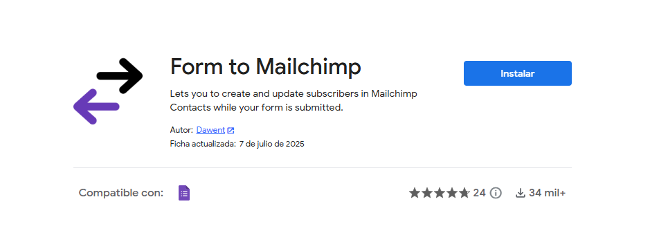 - Ve a Google Marketplace y busca el complemento Form to Mailchimp
