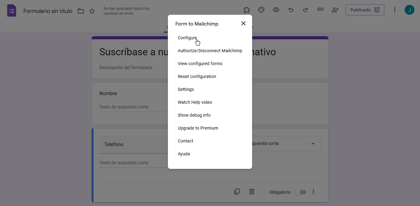 Cómo conectar Google Forms con Mailchimp utilizando el complemento Form to Mailchimp