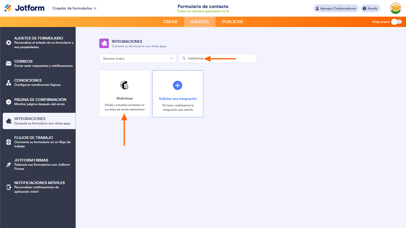 Sigue estos pasos para integrar Jotform con Mailchimp: