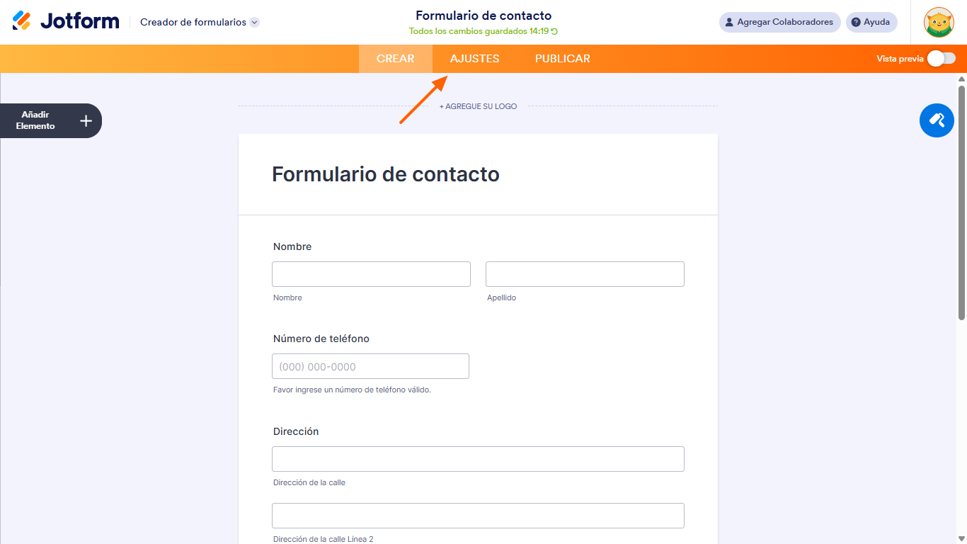 - Haz clic en la pestaña de Ajustes en la parte superior de la página.
