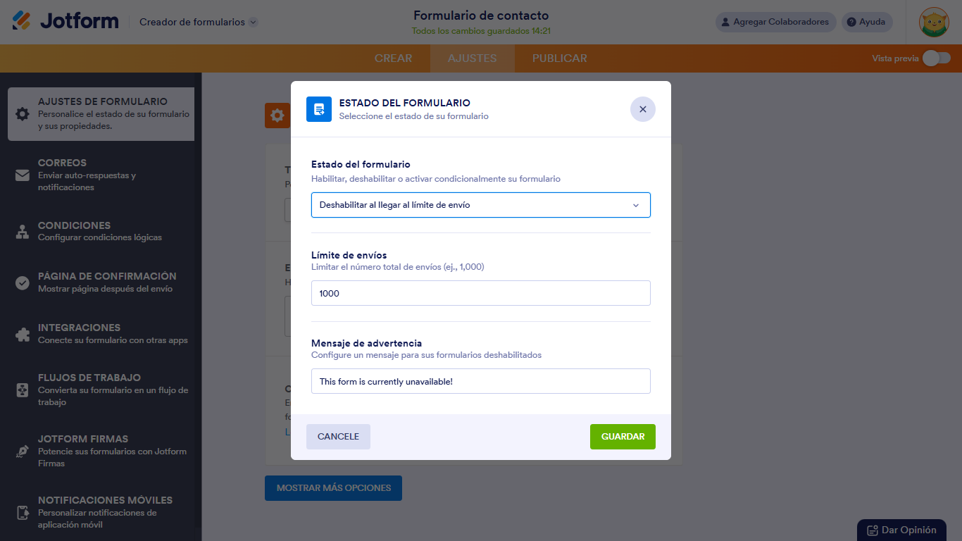 Después de establecer el número de envíos que aceptarás, el formulario se cerrará automáticamente una vez que se alcance ese límite. Es así de sencillo.
