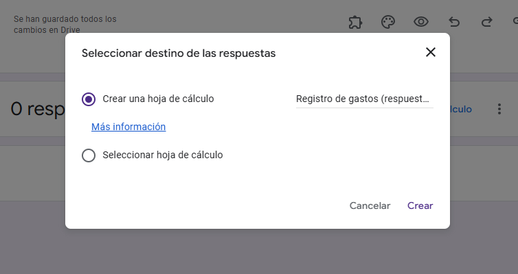 Ahora que has creado un formulario básico de rastreador de gastos, es momento de crear la Google Sheet que llevará el registro de todas tus entradas de gastos.