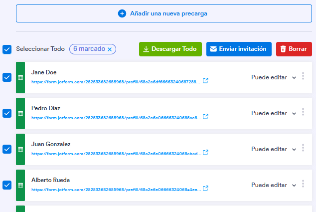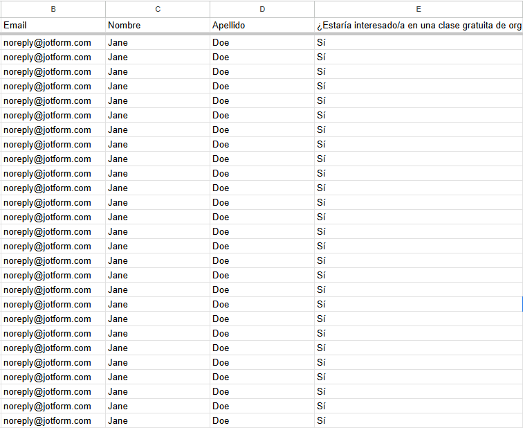 Judy utilizó Jotform Tablas para agrupar fácilmente a todas las personas interesadas en su clase. Luego creó un nuevo pre-relleno a partir de los datos de su tabla.