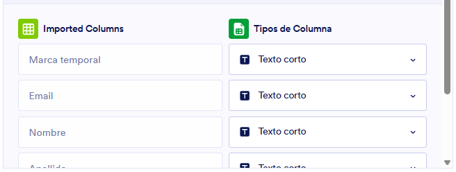 A continuación, Judy exportó su hoja de Google a un archivo CSV y lo importó en una Tabla de Jotform.