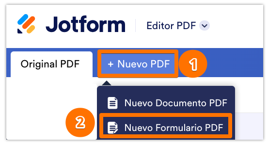 1. Con la página del Editor PDF abierta, haga clic en la pestaña ➕NUEVO PDF.