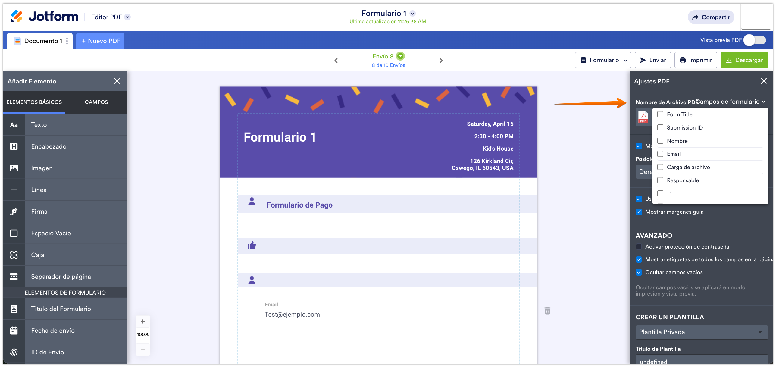 Y así es como cambia el nombre de archivo del documento PDF de sus formularios.