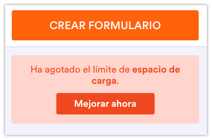 Para el límite de Almacenaje de Envíos sus formularios continuarán recibiendo envíos, pero los datos previos se eliminarán para dar paso a los nuevos, esto se explica arriba, y en el correo electrónico que recibirá. Para el número total de “Formularios” activos, si alcanzó el límite, no podrá crear un nuevo formulario ni activar otro. Para el límite diario API, las aplicaciones, los widgets o cualquier cosa que use llamadas API fallarán si alcanza el límite.
