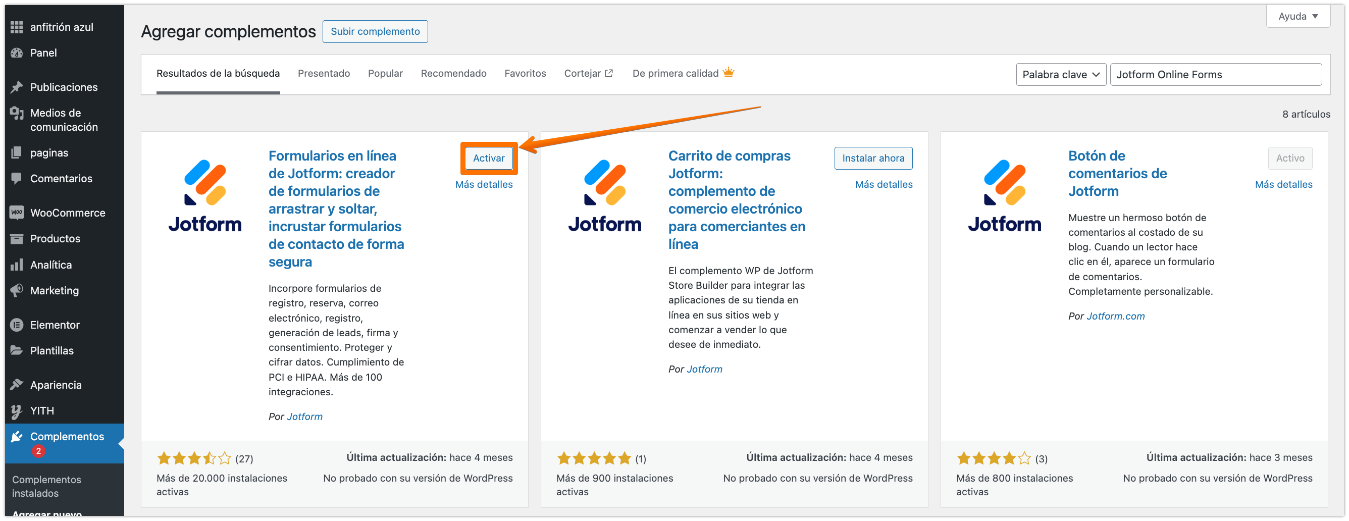 - En la página de añadir extensiones, busque instalar Formularios Online de Jotform.