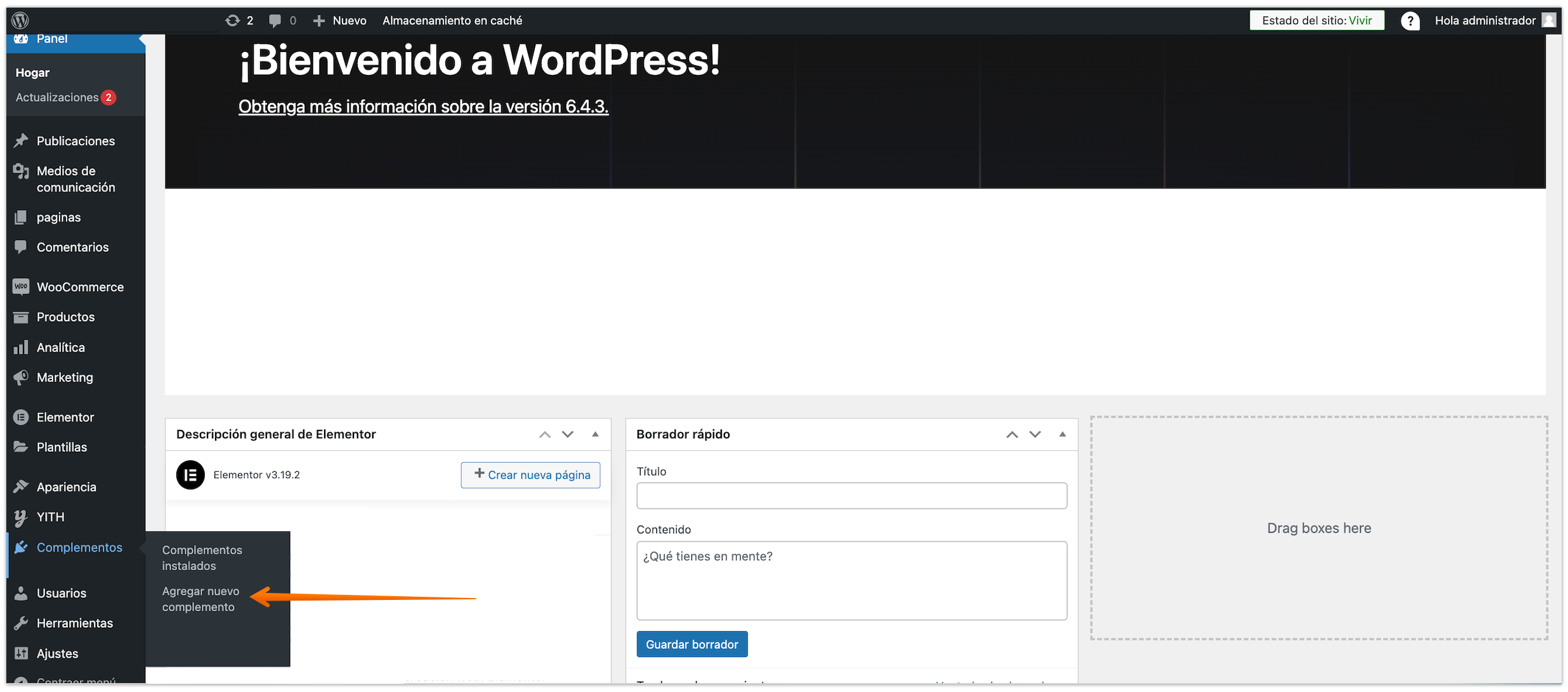 - En el menú principal a la derecha, escoged Plugins y clicamos en Añadir Nuevo.