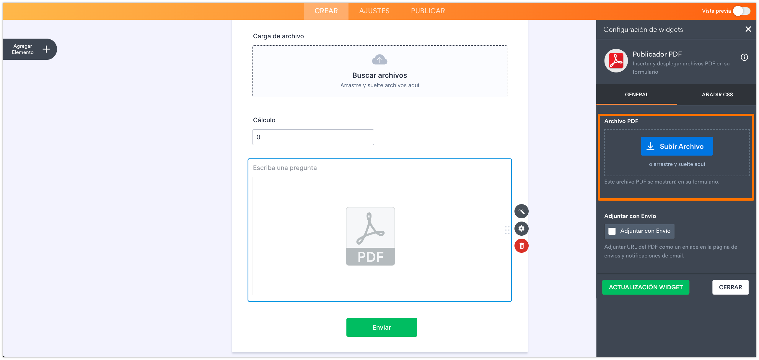 - Clique o arrastre y suelte el Publicador PDF para añadir.
