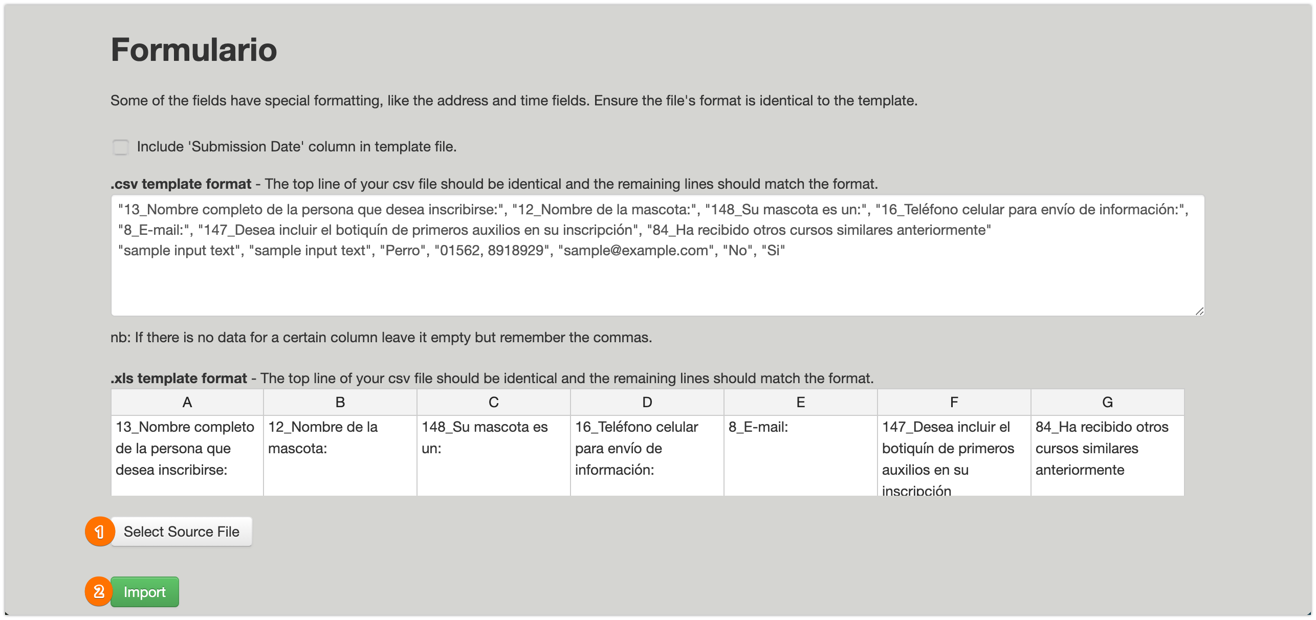 Para importar vuestro Excel o datos CSV a vuestro formulario