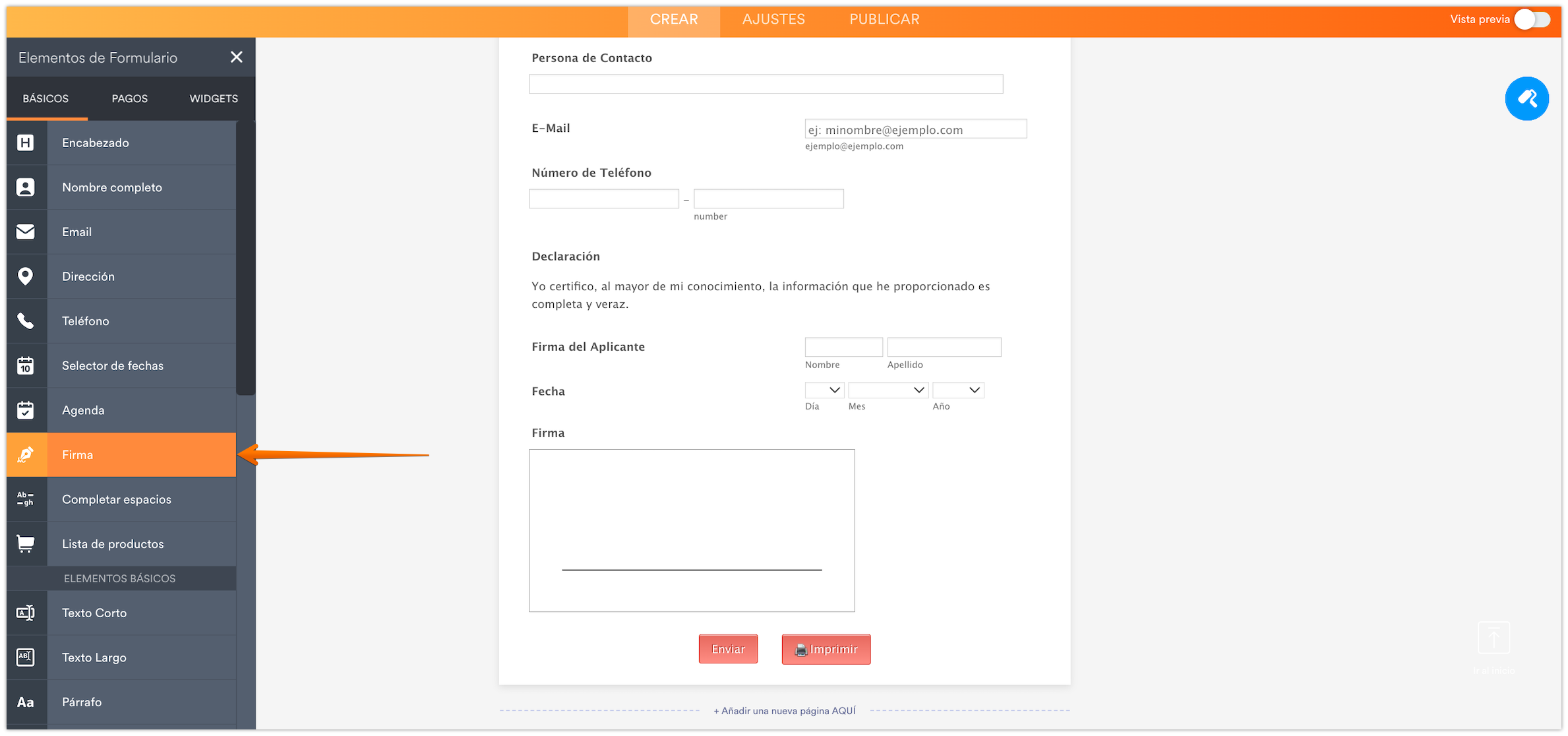 - Añade el elemento de Firma a su formulario si vuestro proceso de aprobación requiere de una firma online por parte del aprobador.
