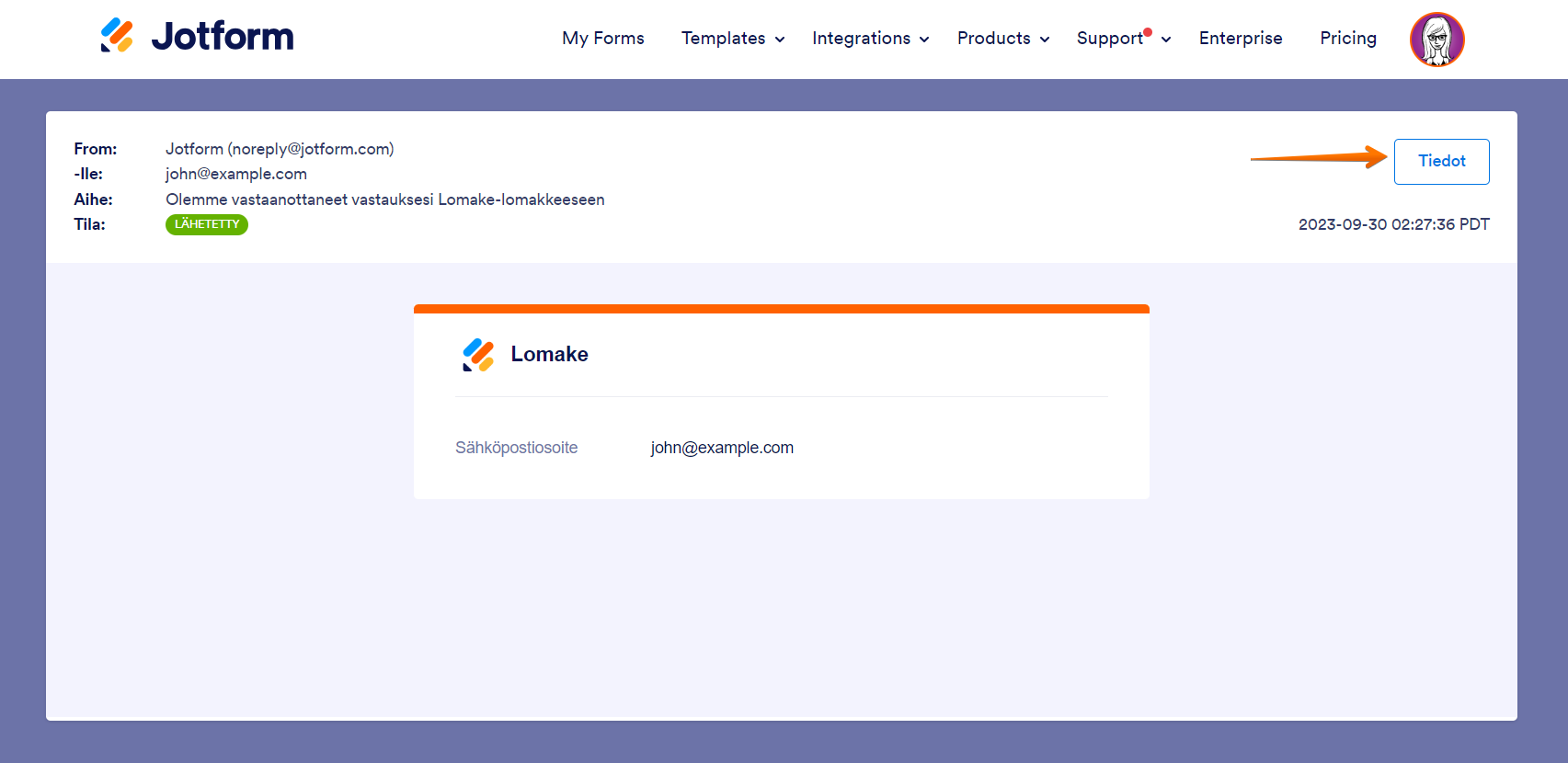 On tärkeää tietää ovatko lomakkeesi sähköpostit lähteneet odotetusti, ja siksi olemme lisänneet kätevän työkalun, josta voit tarkistaa lomakkeen sähköpostit. Käyttämällä työkalua voit selvittää onko sähköpostit lähetetty onnistuneesti saajan sähköpostiin, vai onko lähetys epäonnistunut jostain syystä.