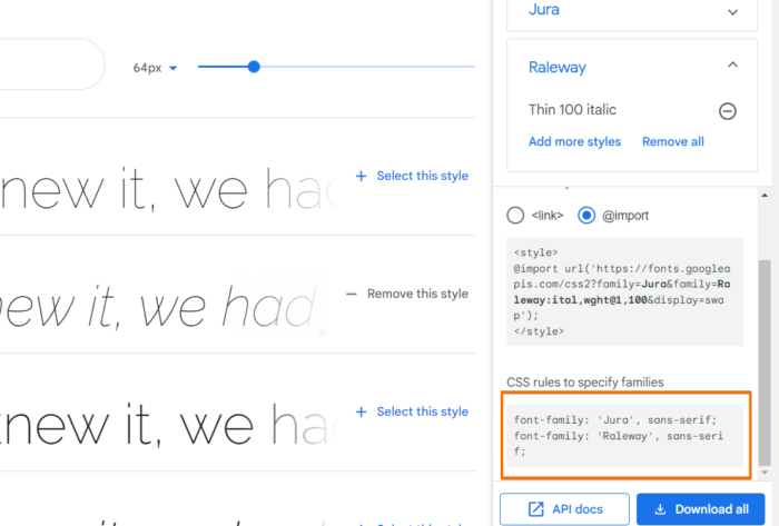 1. Kopioi fontin koodi täältä: https://fonts.google.com/
