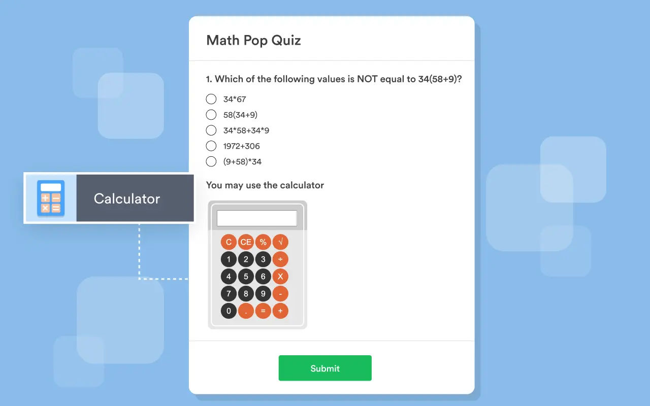 Add a fully-featured calculator to your form with our Calculator widget. Users can perform computations directly from your form. Choose from premade themes or use your own custom CSS. This widget also includes the option to auto-hide the calculator, which users can then open on their own as needed.