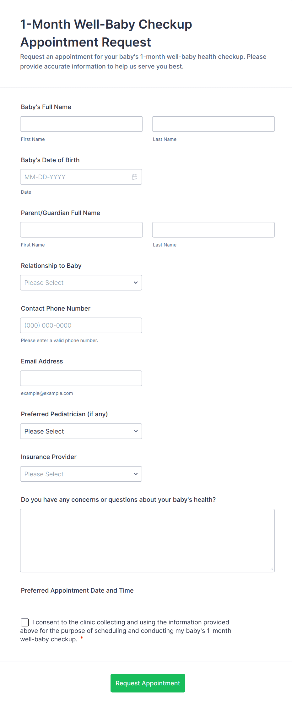 • Medical Appointments: May require fields for insurance information, reason for visit, and medical history.