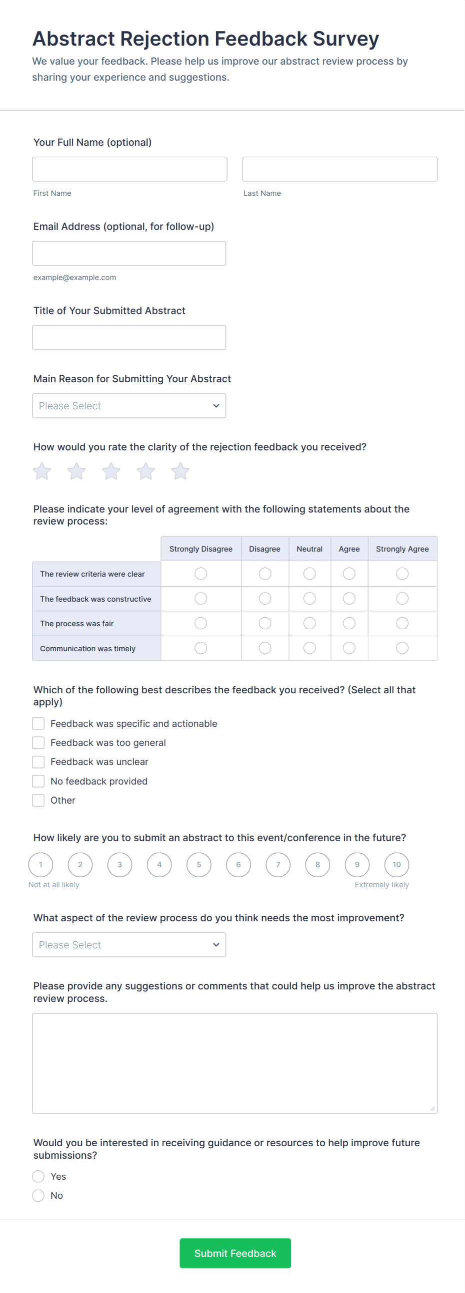 - For academic or research purposes, ensure anonymity or confidentiality as needed, and include consent checkboxes if required.