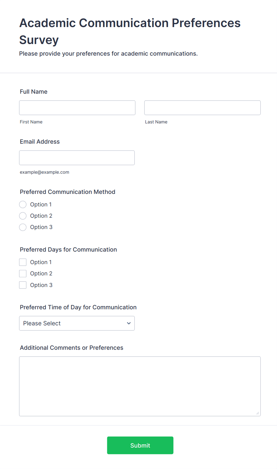 • For parent surveys: Add satisfaction ratings, communication feedback, and suggestions for improvement.