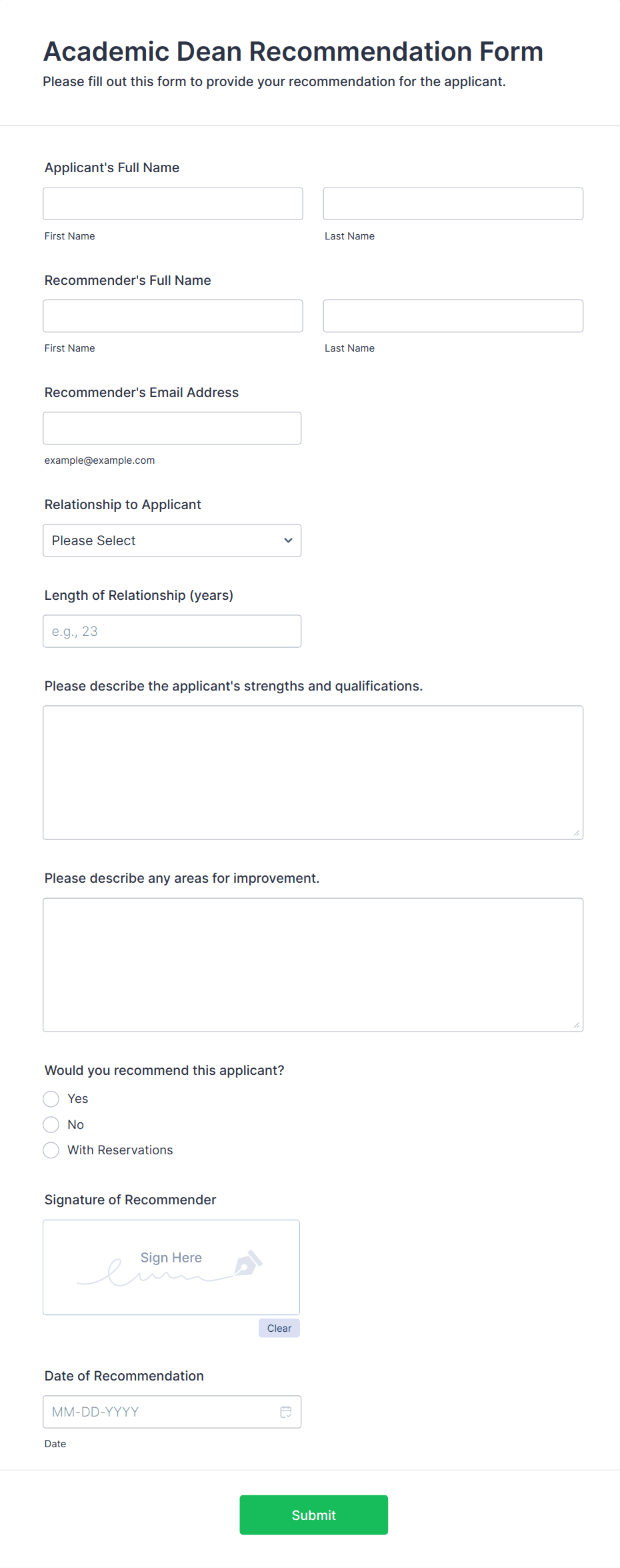 By following these steps, you can create a recommendation form that simplifies the reference collection process, ensures data consistency, and supports your decision-making workflow. Jotform’s flexible features and integrations make it easy to adapt your form for any scenario, saving time and improving the quality of your recommendations.