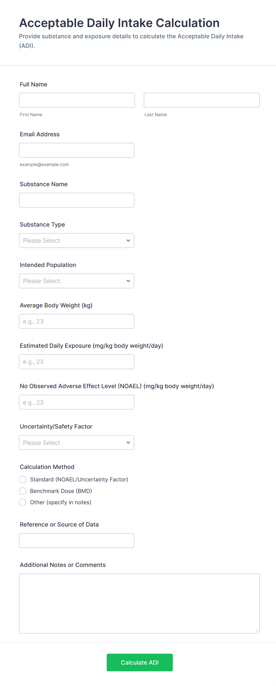 Calculation forms are specialized online forms designed to perform automatic calculations based on user input. These forms are commonly used to estimate costs, calculate totals, generate quotes, assess scores, or process any data that requires real-time mathematical operations. Typical use cases include order forms that tally product prices, loan calculators that estimate monthly payments, grade calculators for students, BMI calculators for health assessments, and budget planners for personal or business finance. Calculation forms streamline complex processes by providing instant results, reducing manual errors, and enhancing user experience.