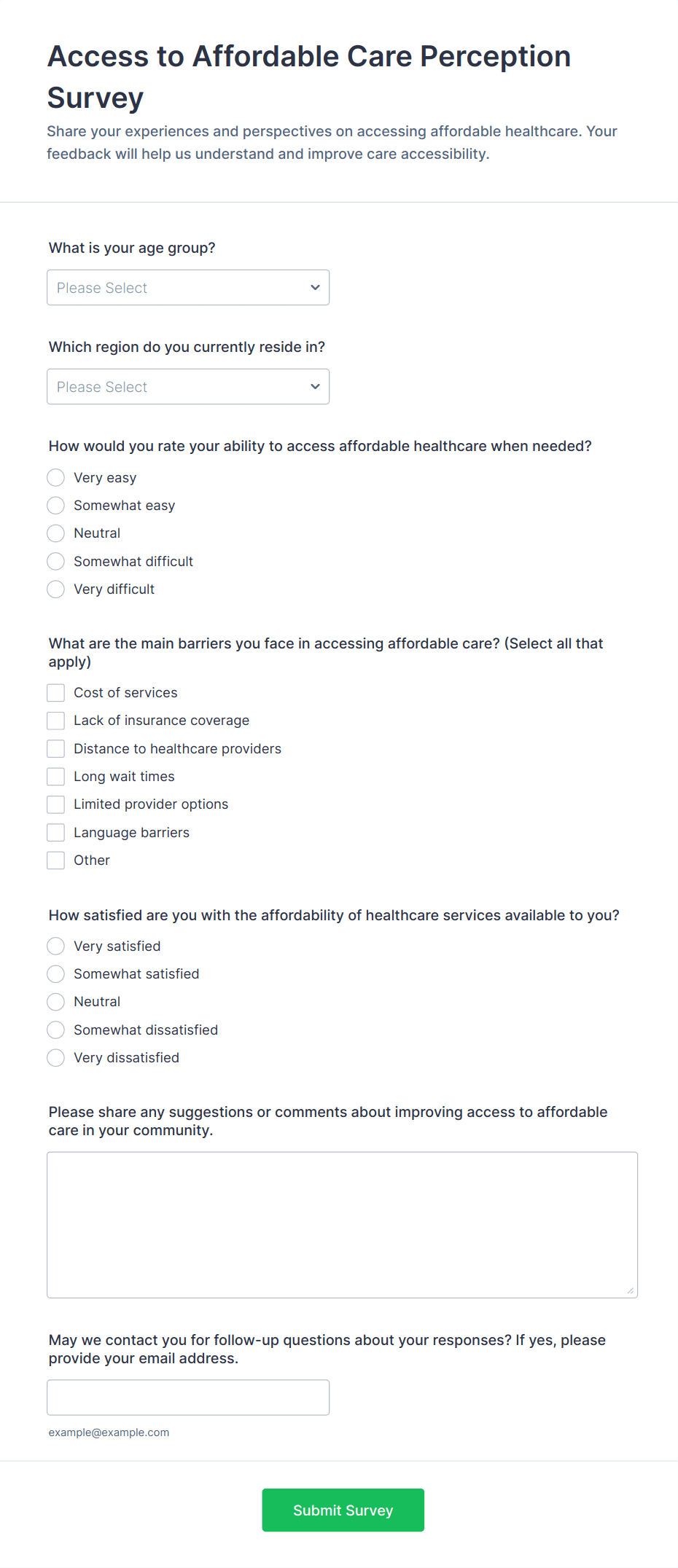 By following these steps, you can create a healthcare survey that is both user-friendly and compliant with industry standards, helping you gather actionable insights and improve healthcare outcomes.