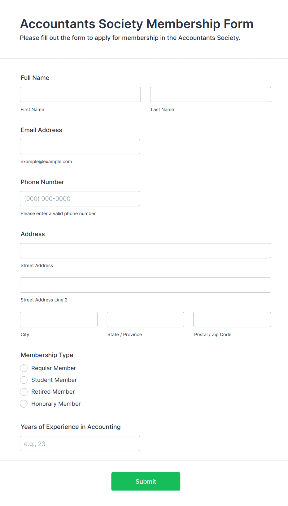 Membership forms are used by clubs, gyms, professional associations, nonprofits, community groups, and any organization that manages a member base.