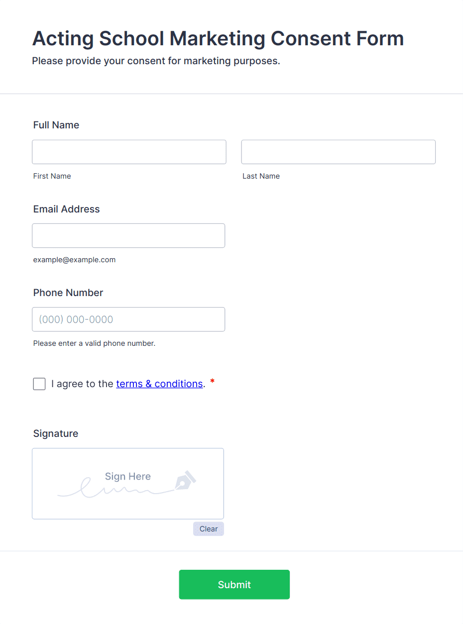 An acting application form is used to collect information about those interested in acting as extras or appearing in commercials, TV shows, or movies. Customize this template without coding!