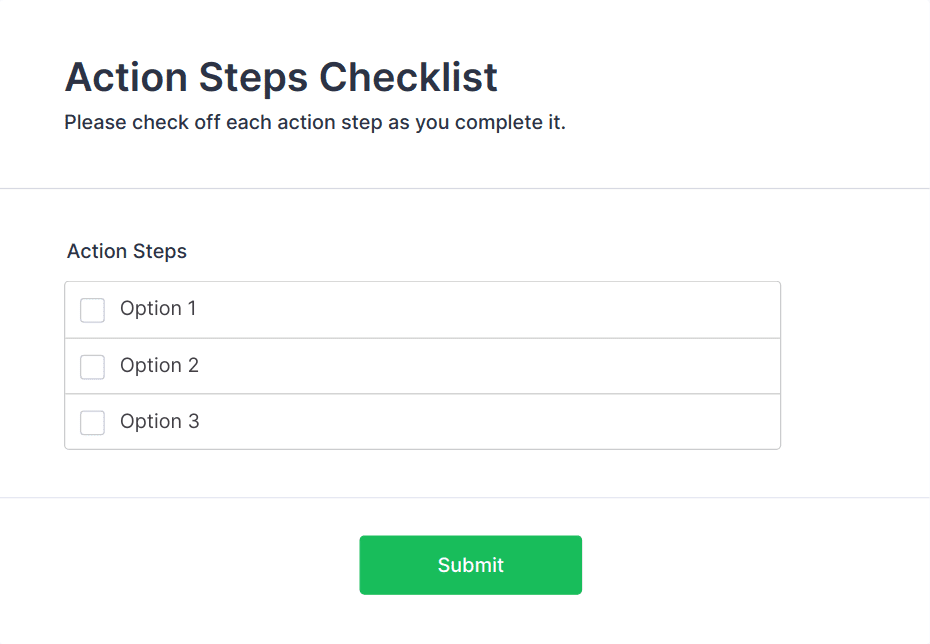 • Enable autoresponder emails to confirm receipt to the person completing the checklist.