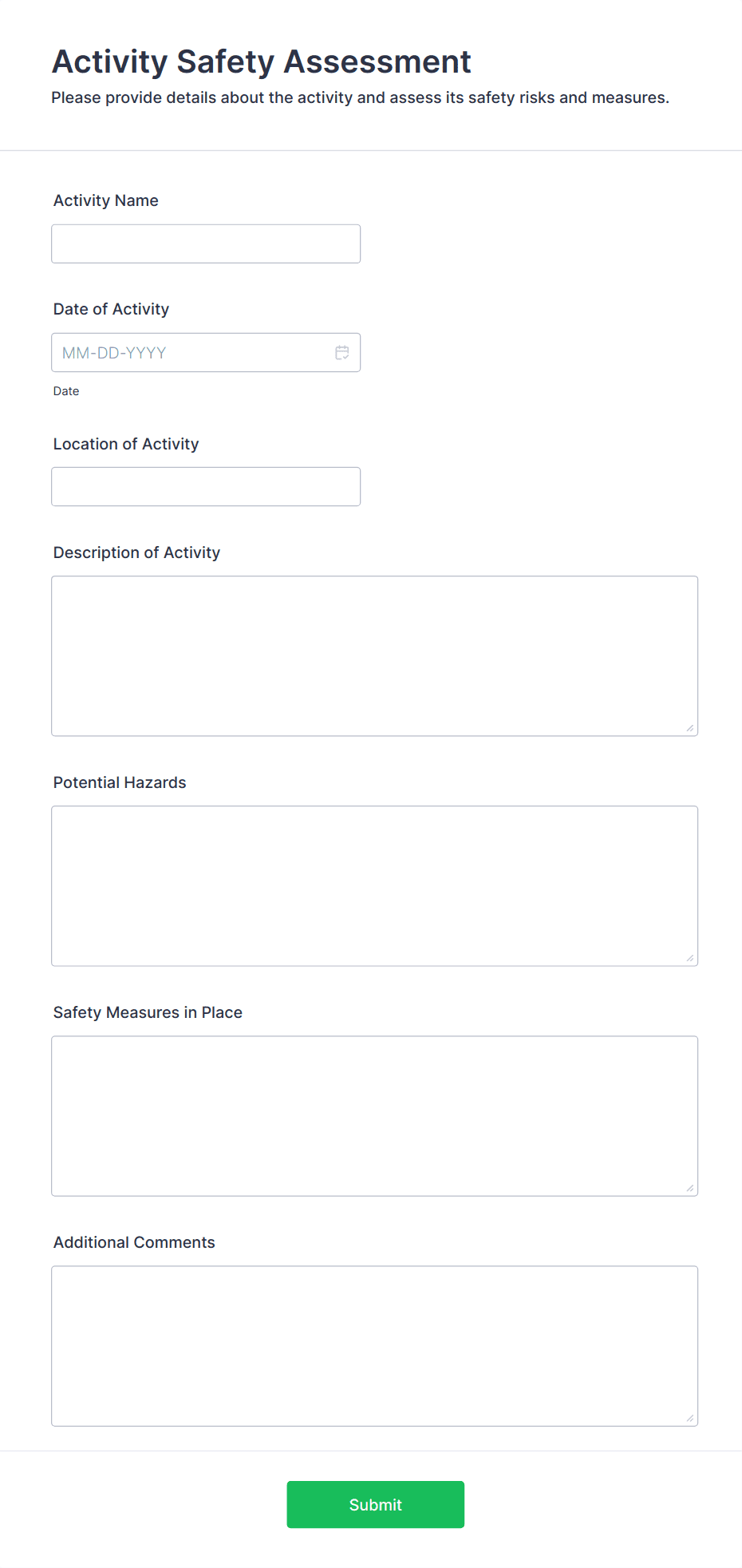 By following these steps, you can create a tailored assessment form that meets your specific needs, streamlines data collection, and provides actionable insights for your organization or project.