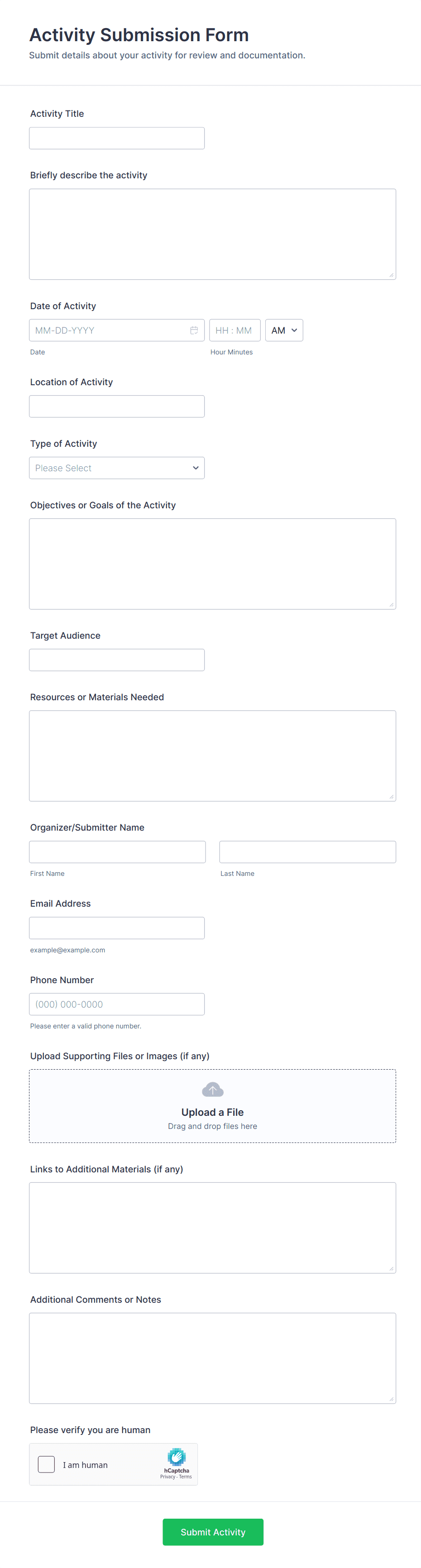 Yes. Conditional logic and custom fields can tailor the form for internal events, venue bookings, virtual events, and hybrid formats.