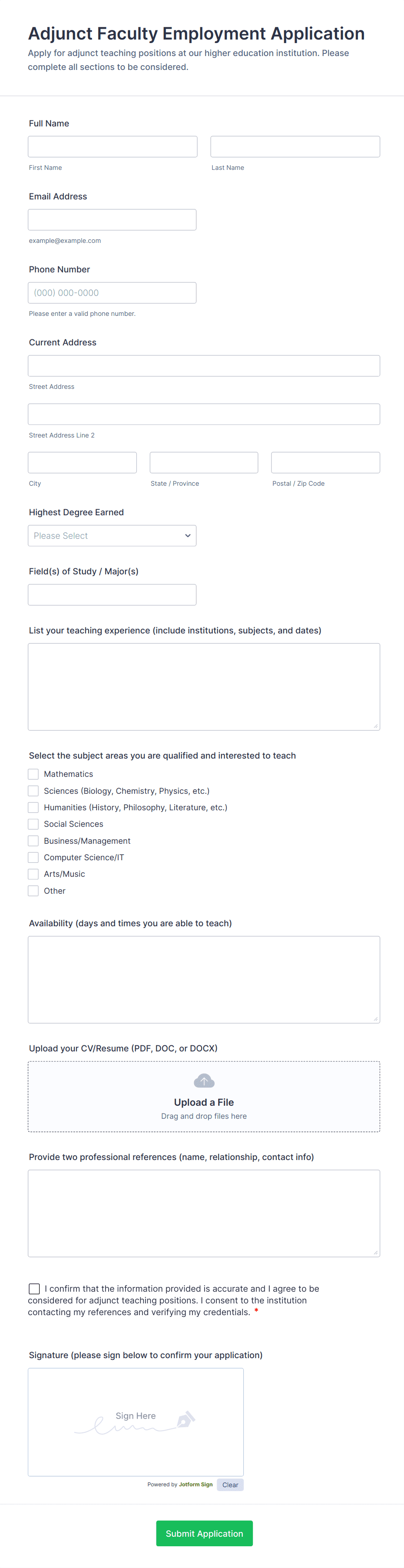 Employment Application Form