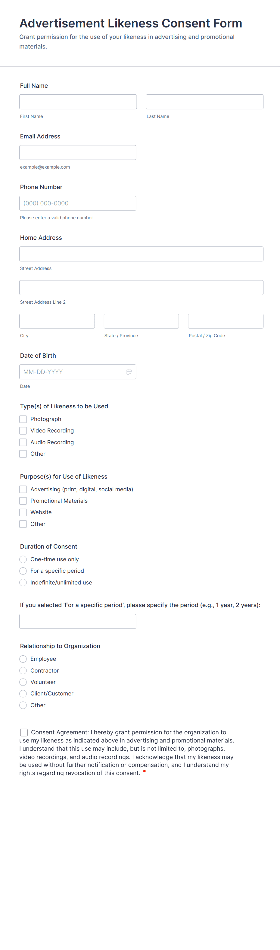 - For media or event forms, add fields for usage rights, revocation terms, and parental consent if minors are involved.