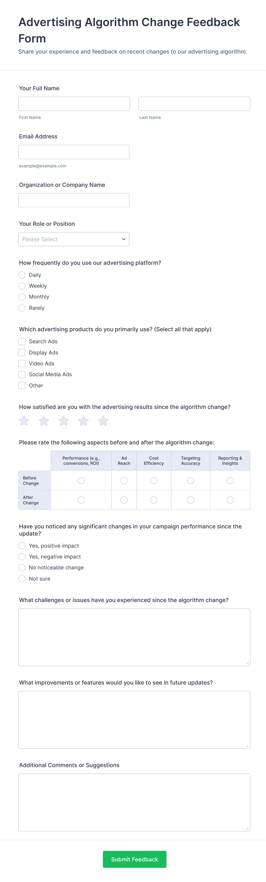 An Advertising Survey Form is a form template designed to help advertisers and marketers gather actionable insights and improve the effectiveness of their advertising campaigns.