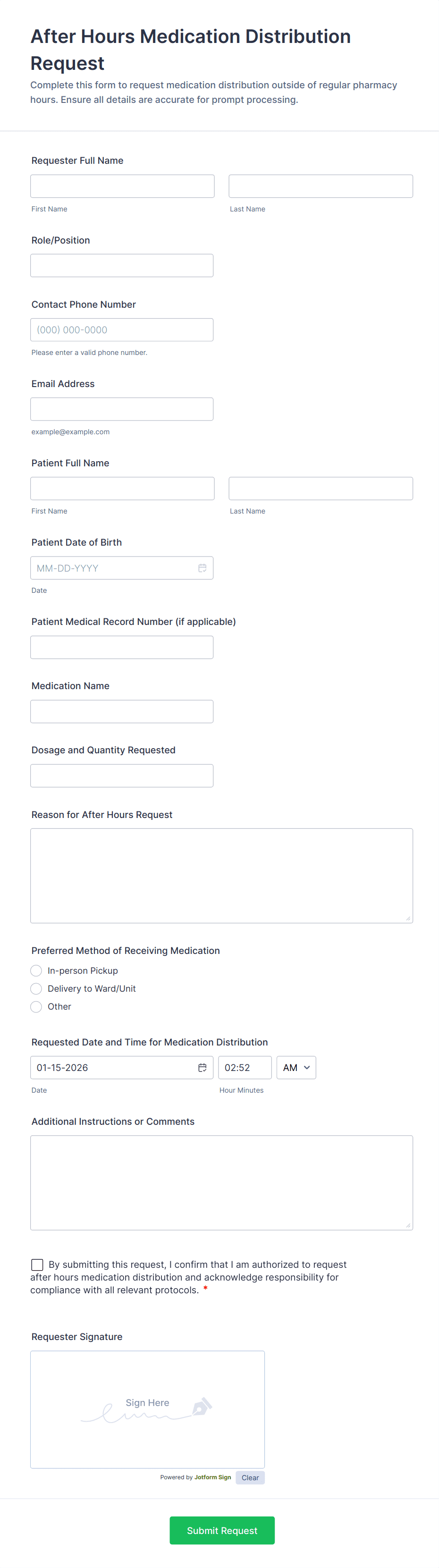 Whether your pharmacy is administering COVID-19 vaccines, flu shots, or just collecting patient information, do it securely and speedily with Jotform! Whether your pharmacy is part of the CPESN, NCPA, or another organization, you can use this form to collect vaccine registrations, consent forms, surveys, and more from any device. With online Pharmacy Forms, you can quickly customize a template below to perfectly match your pharmacy’s needs — then embed the form in your pharmacy’s website, share it with patients using a link, or have them fill it out in-person on your pharmacy’s tablet or computer.