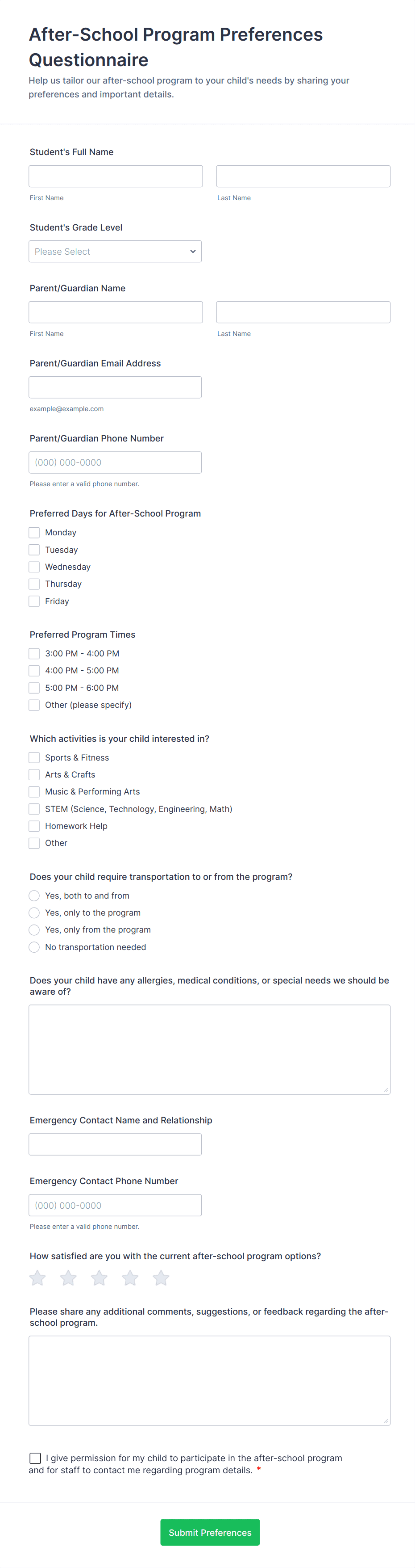 With Jotform, users can easily access and customize a wide range of questionnaire templates to fit their specific needs. Leveraging Jotform’s intuitive drag-and-drop Form Builder, users can add or modify questions, integrate widgets, and apply conditional logic without any coding knowledge. Jotform’s platform also supports seamless data collection, automatic storage, and real-time notifications, making it an ideal solution for anyone looking to simplify the process of creating, distributing, and managing questionnaires for business, academic, or personal use.