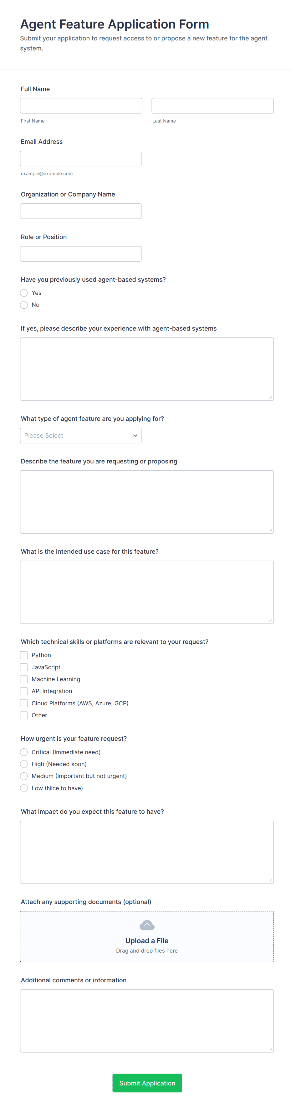 • For job applications, include fields for personal information, education, work experience, references, and file uploads for resumes or cover letters.