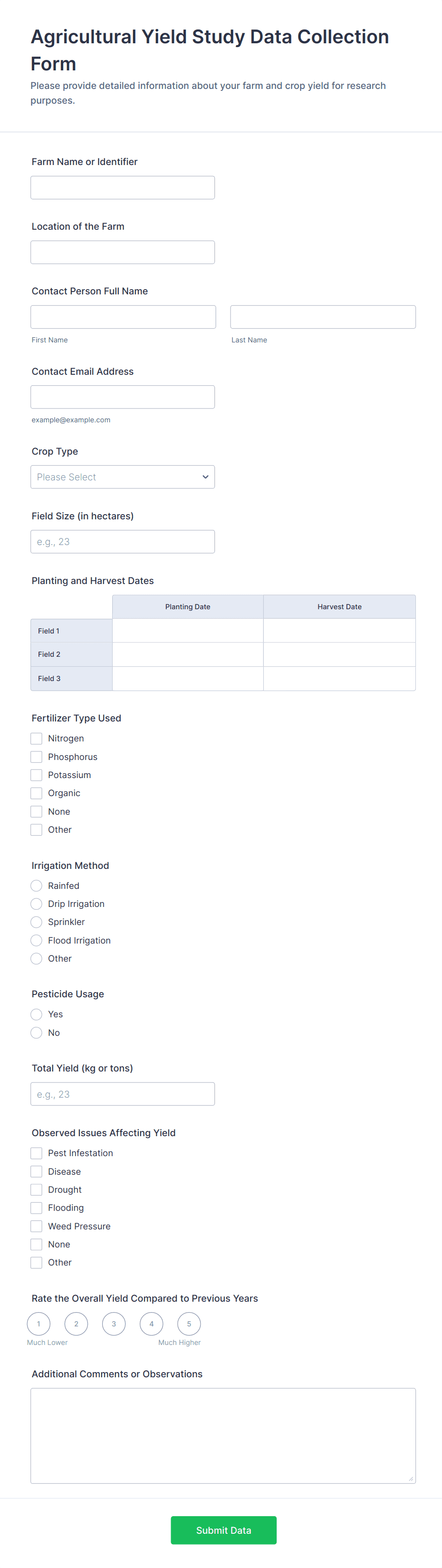 By systematically recording activities and data, farmer forms support compliance with agricultural regulations and certifications, and enhance traceability for food safety and quality assurance.