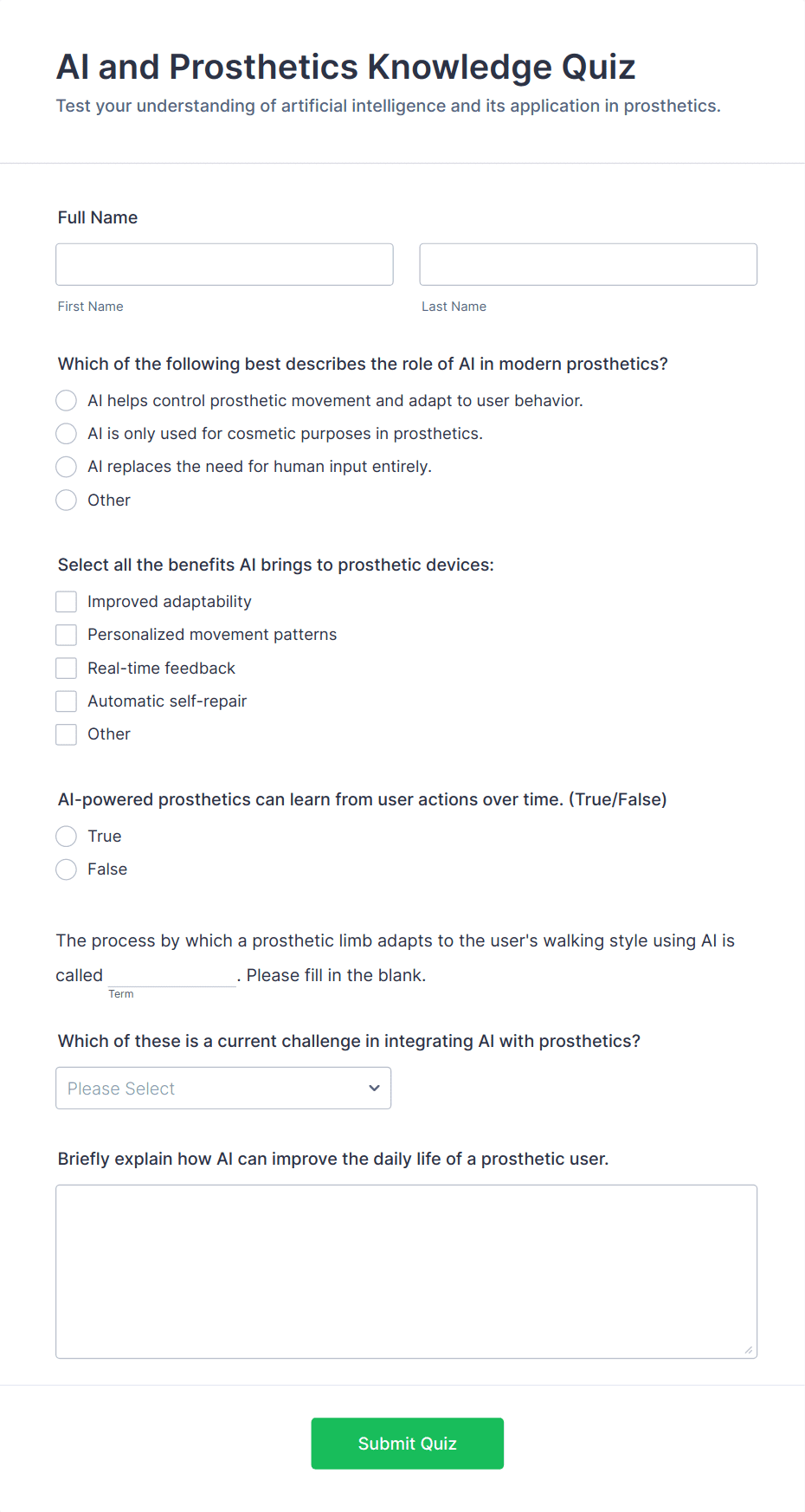 • Personality or Marketing Quizzes: Often use branching logic and personalized results based on user responses.