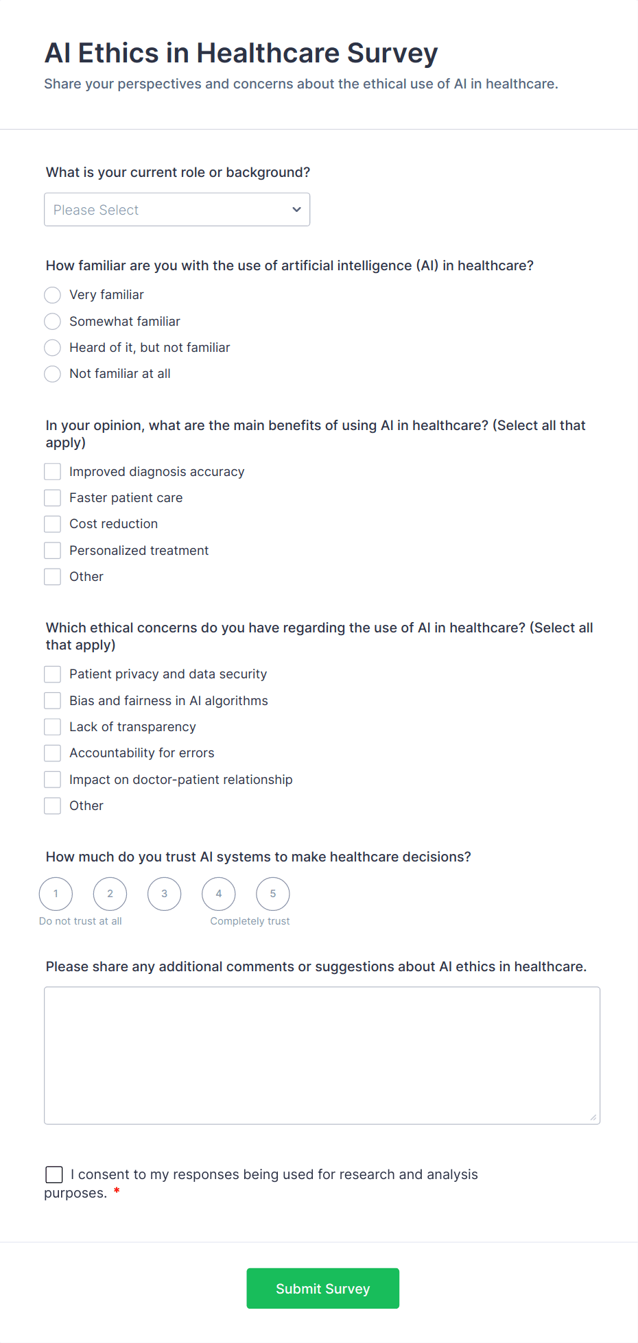 By following these steps, you can create a healthcare survey that is both user-friendly and compliant with industry standards, helping you gather actionable insights and improve healthcare outcomes.